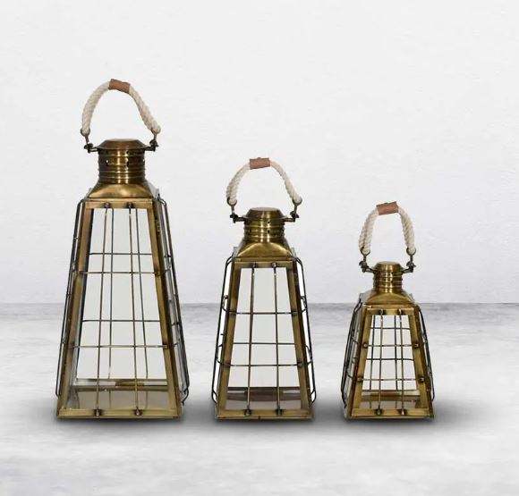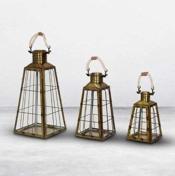 โคมไฟทองเหลืองโบราณสุดหรูพร้อมกระจกใสและทองเหลืองชุบสแตนเลสพร้อมที่จับเชือกทอสำหรับตกแต่งบ้านและงานแต่งงาน