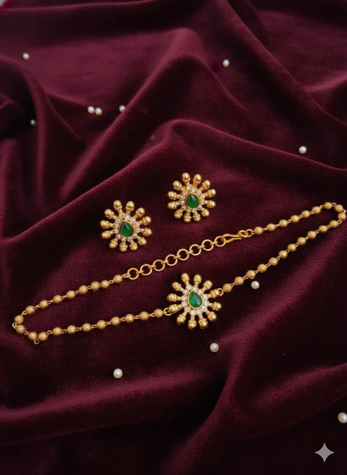 ชุดเครื่องประดับดีไซน์โบราณสุดหรู ชุดสร้อยคอพลอยสีเขียวมรกตคุณภาพสูง ขายส่งเครื่องประดับแฟชั่นสำหรับผู้หญิง