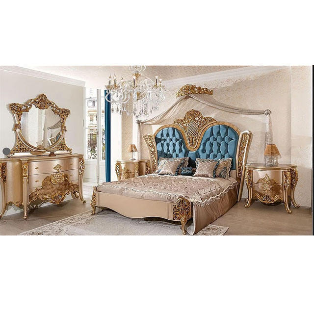 Luxury Antique Gold Carved Bedroom Furniture SetProduct name
