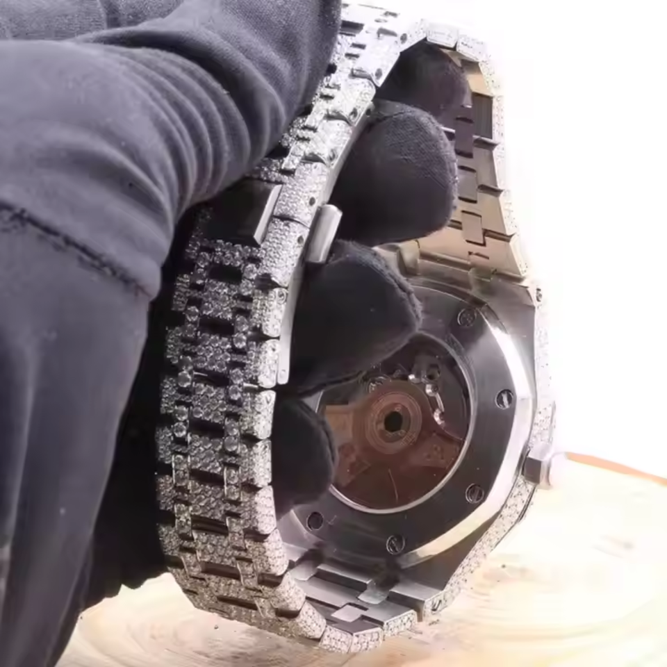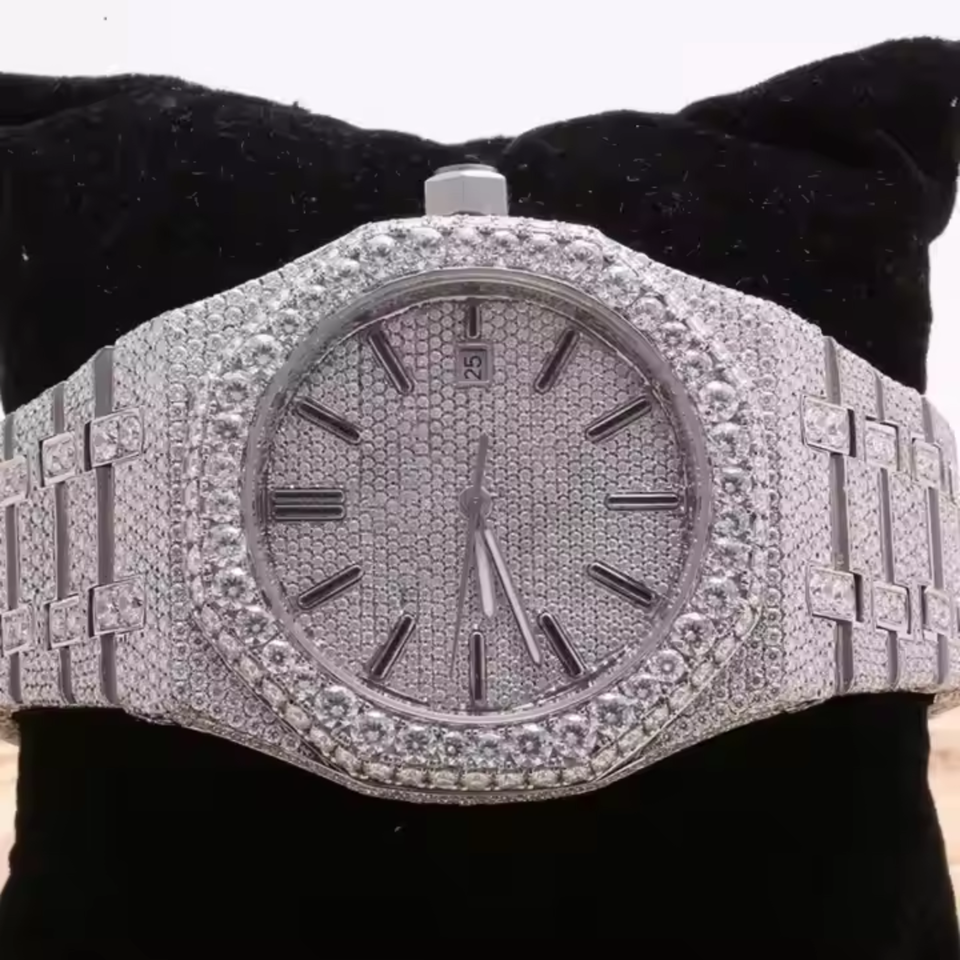 นาฬิกาสเตนเลสแนวฮิปฮอปโบราณสุดหรูเครื่องประดับ VVS สำหรับผู้หญิงผู้ชายเครื่องประดับแก้วชั้นสูงสินค้าส่งออกจากอินเดีย