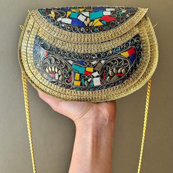 กระเป๋าคลัทช์โลหะโบราณสุดหรูสำหรับผู้หญิง ดีไซน์เก๋ ประดับคริสตัล แฟชั่นอินเทรนด์