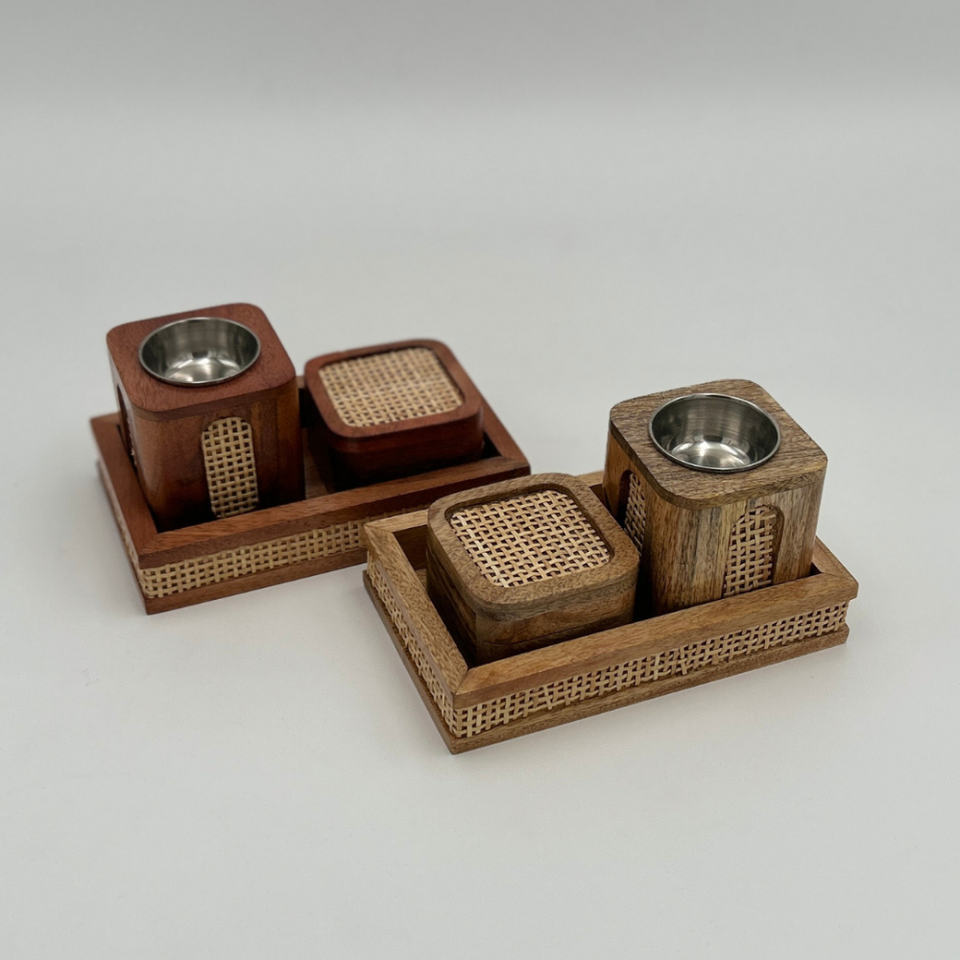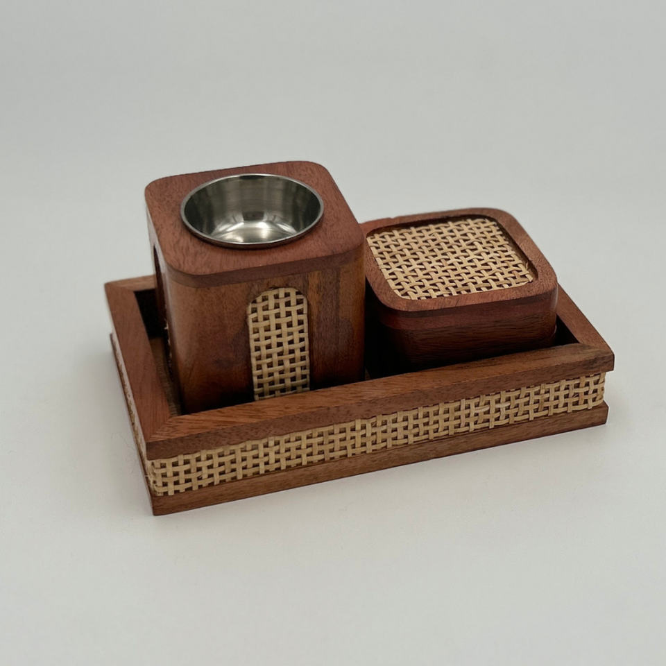 ชุดเตาเผาบัคฮูร์แบบอาหรับสุดหรู ฐานไม้และหวาย ที่ใส่เครื่องหอมโลหะ เตาเผาอูด ของตกแต่งบ้าน ของขวัญ ของตกแต่งสำหรับเดือนรอมฎอน ของตกแต่งแบบอิสลาม