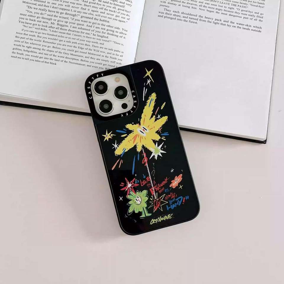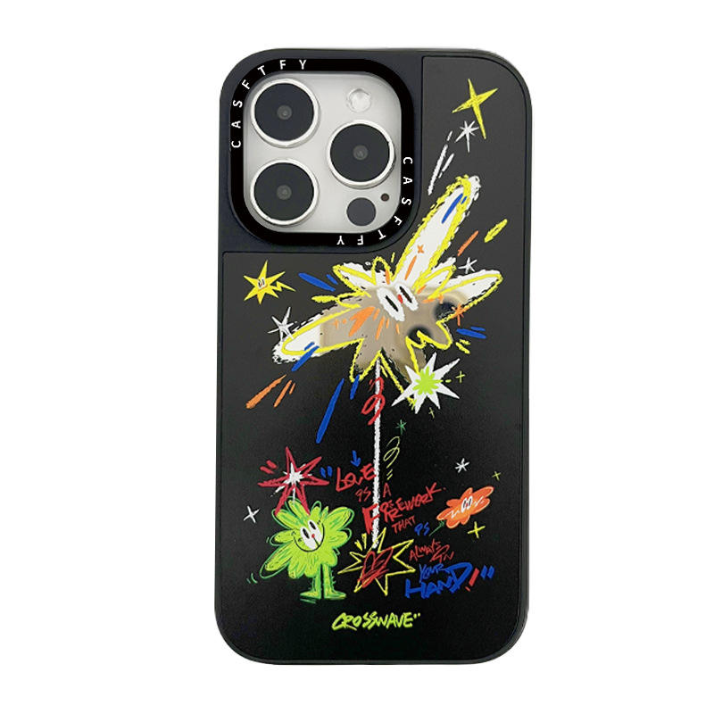 เคสโทรศัพท์กันกระแทกแบบกระจกเงา TPU ลายดอกไม้ไฟสุดหรูสำหรับ 14 Pro Max