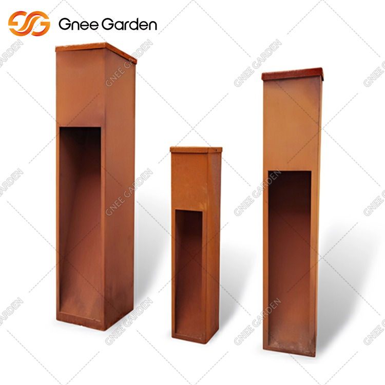 โคมไฟเหล็กคอร์เทนสังเคราะห์สุดหรู พร้อมไฟพลังงานแสงอาทิตย์ สีสนิม สำหรับตกแต่งสวนและสนามหญ้า