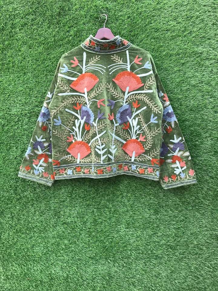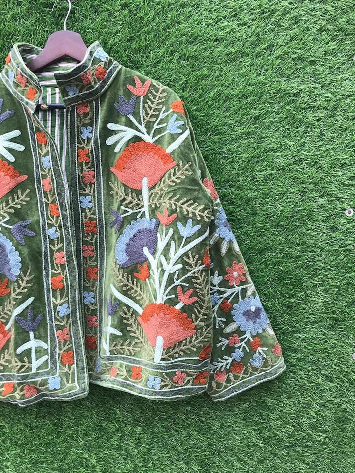 เสื้อโค้ทหรูสไตล์เอเชียกลางเสื้อแจ็คเก็ตปักลายสำหรับสตรีสำหรับฤดูใบไม้ร่วงและฤดูหนาว