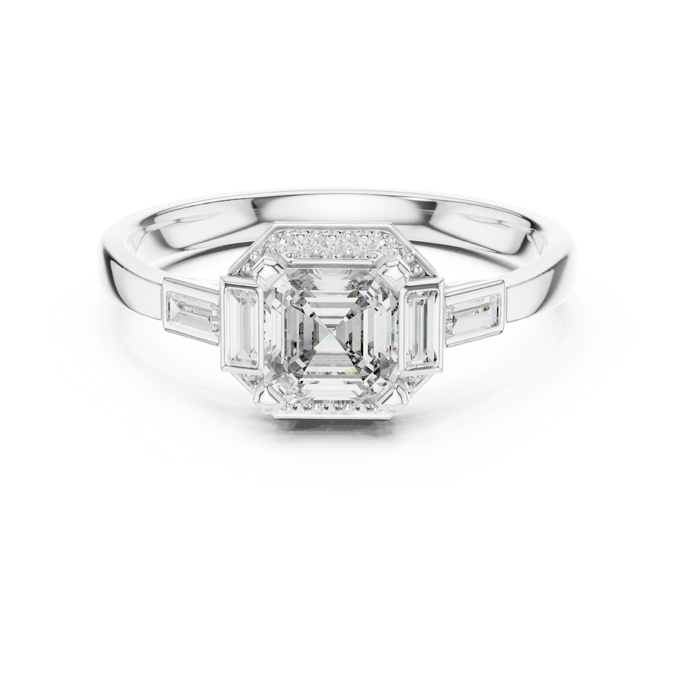 แหวนหมั้นเพชรโมอิสซาไนต์ทรงอัสเชอร์หรูหรา ประดับเพชรสามเม็ด ทองชมพู เครื่องประดับเจ้าสาวงานแต่งงานสำหรับผู้หญิง ได้รับการรับรองจาก IGI