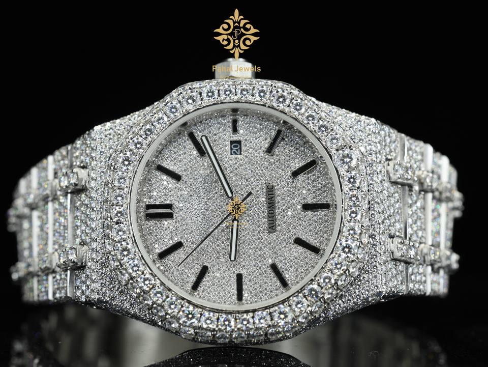 นาฬิกาข้อมือผู้ชายหรูหราอัตโนมัติประดับเพชรโมอิสซาไนต์ สายแบบเพชรประณีต ตัวล็อคแบบเข็มขัด ระบบกลไกคุณภาพสูง เหมาะสำหรับทุกโอกาส พร้อมฟังก์ชั่นบอกวันที่