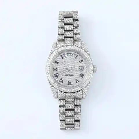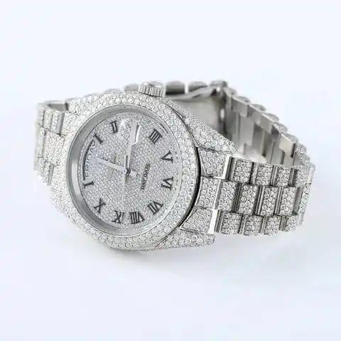นาฬิกาข้อมือสแตนเลสสตีลกันน้ำระบบอัตโนมัติสุดหรู คุณภาพสูง ประดับเพชรโมอิสซาไนต์ VVS สายกว้าง 20 มม. ฝังเพชรเต็มเรือน