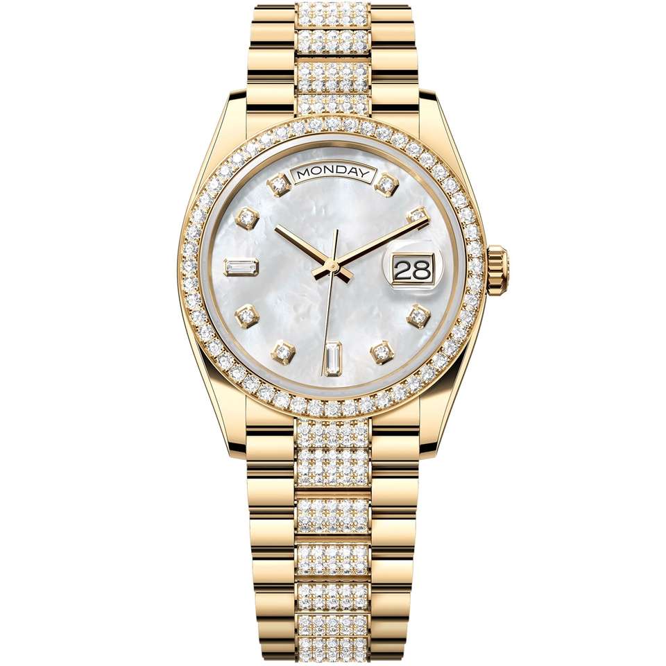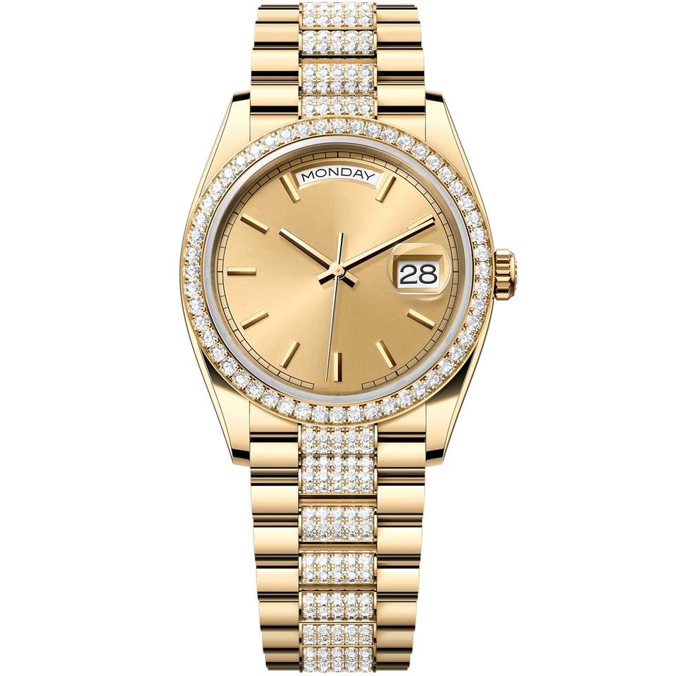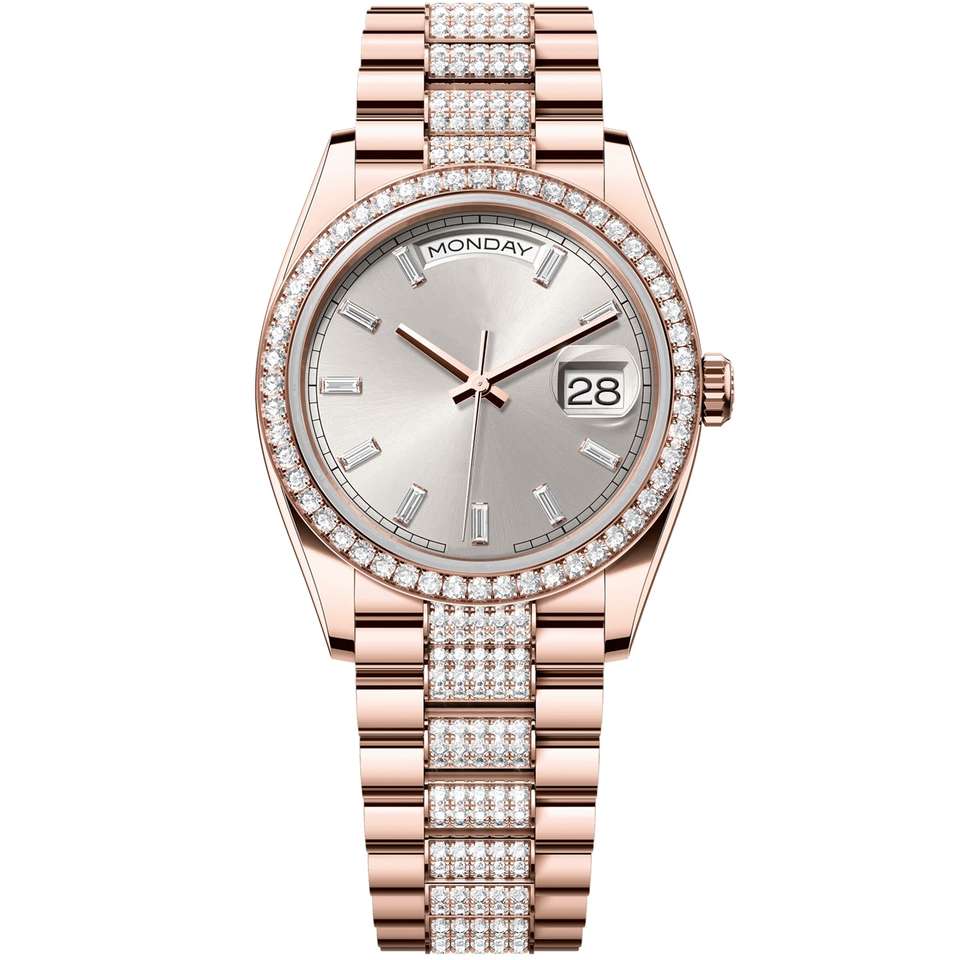 นาฬิกาข้อมือกลไกอัตโนมัติสำหรับผู้ชายหน้าปัดเพชรสายสแตนเลสสตีลกันน้ำขนาด36มม. สไตล์ธุรกิจแฟชั่น