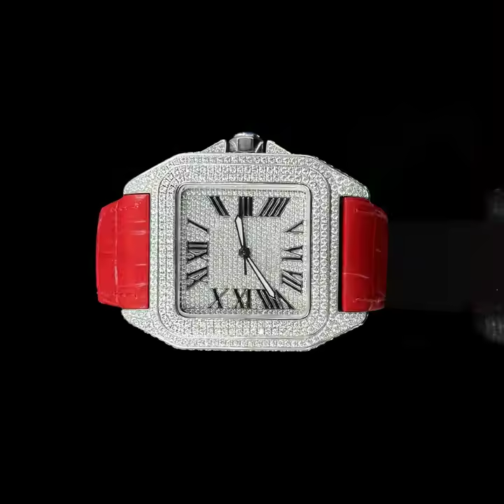 นาฬิกาเพชรเม็ดเพชรมอยส์ซาไนต์อัตโนมัติหรูหราพร้อมสายหนังคุณภาพดีที่สุด