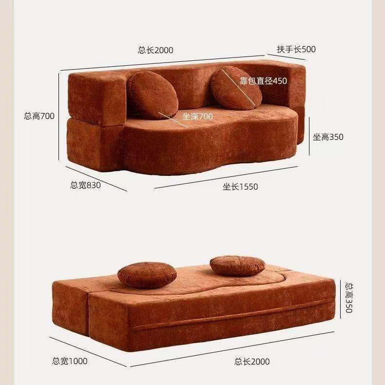 โซฟาพนักพิงหรูหรา โซฟาผ้าสีส้ม ปรับเป็นเตียงนอนได้ สำหรับห้องนั่งเล่น ล็อบบี้โรงแรม ชุดเฟอร์นิเจอร์อเนกประสงค์ สามารถบีบอัดได้