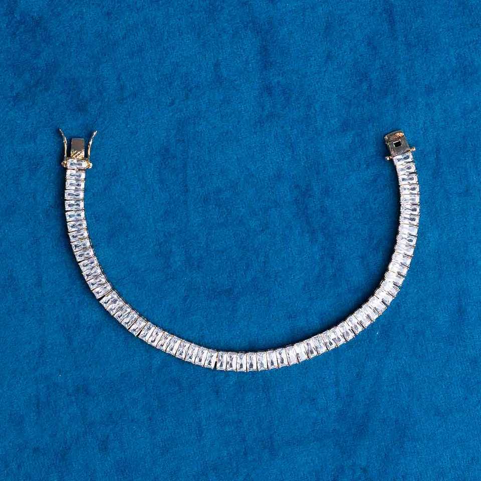 สร้อยข้อมือเทนนิสโมอิสซาไนต์ทรงบาแกตต์สุดหรูสำหรับผู้ชาย ชุบทอง สไตล์ฮิปฮอป เครื่องประดับโดดเด่นสำหรับงานปาร์ตี้ ของขวัญสุดพิเศษ