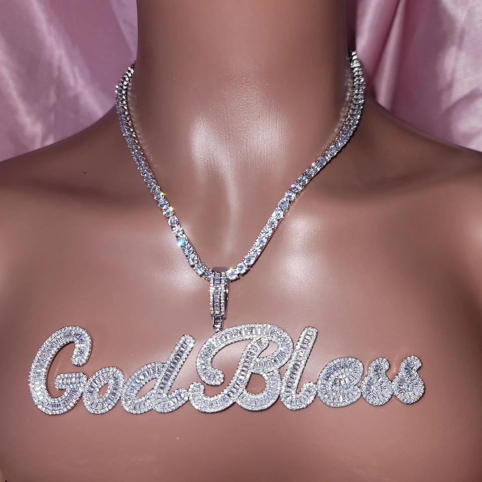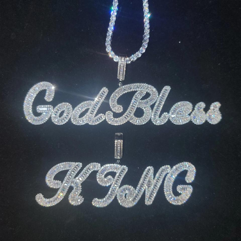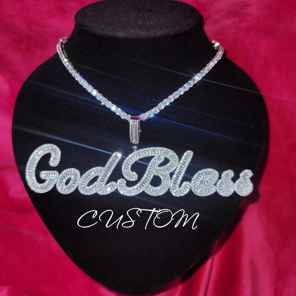 Luxury Baguette Cut Moissanite Diamond Gold Plated 925 Silver Personalized Name Pendant For Women From Indian manufacturer