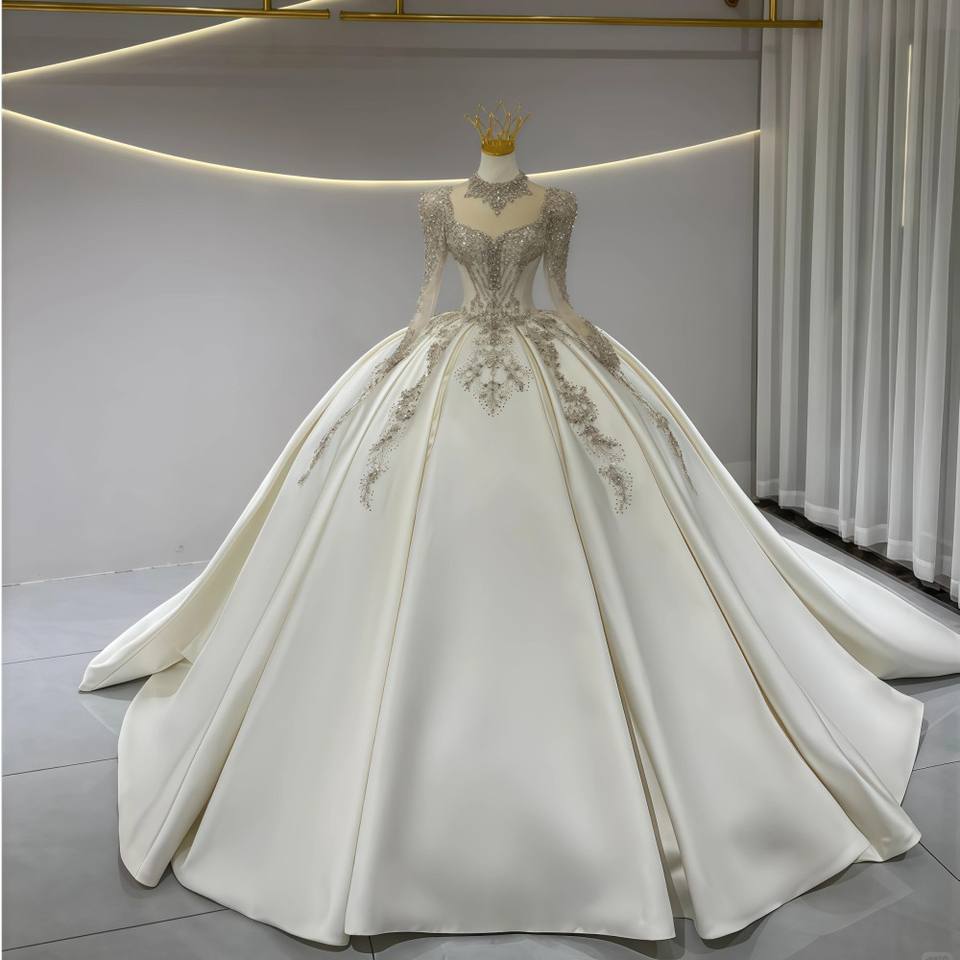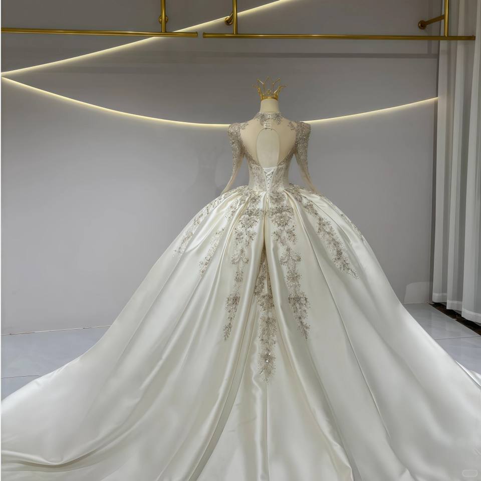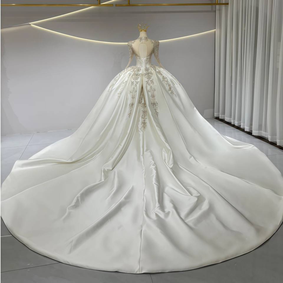 ชุดแต่งงานทรงบอลกาวน์หรูหราทันสมัย คอวี ผ้าซาติน ประดับลูกไม้ ยาวกรอมพื้น ชายกระโปรงยาวแบบคอร์ทเทรน เปิดหลัง ลายดอกไม้ สำหรับผู้หญิง