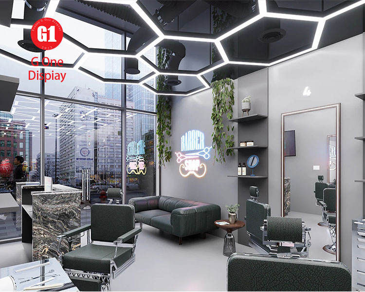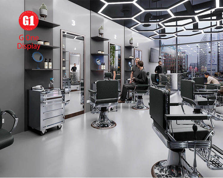 การออกแบบตกแต่งภายในร้านตัดผมสุดหรู | เฟอร์นิเจอร์ตกแต่งร้านเสริมสวยชายแบบกำหนดเอง & สถานีตัดผมไม้เนื้อแข็ง Dero