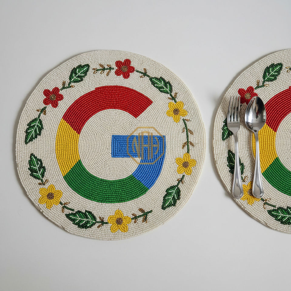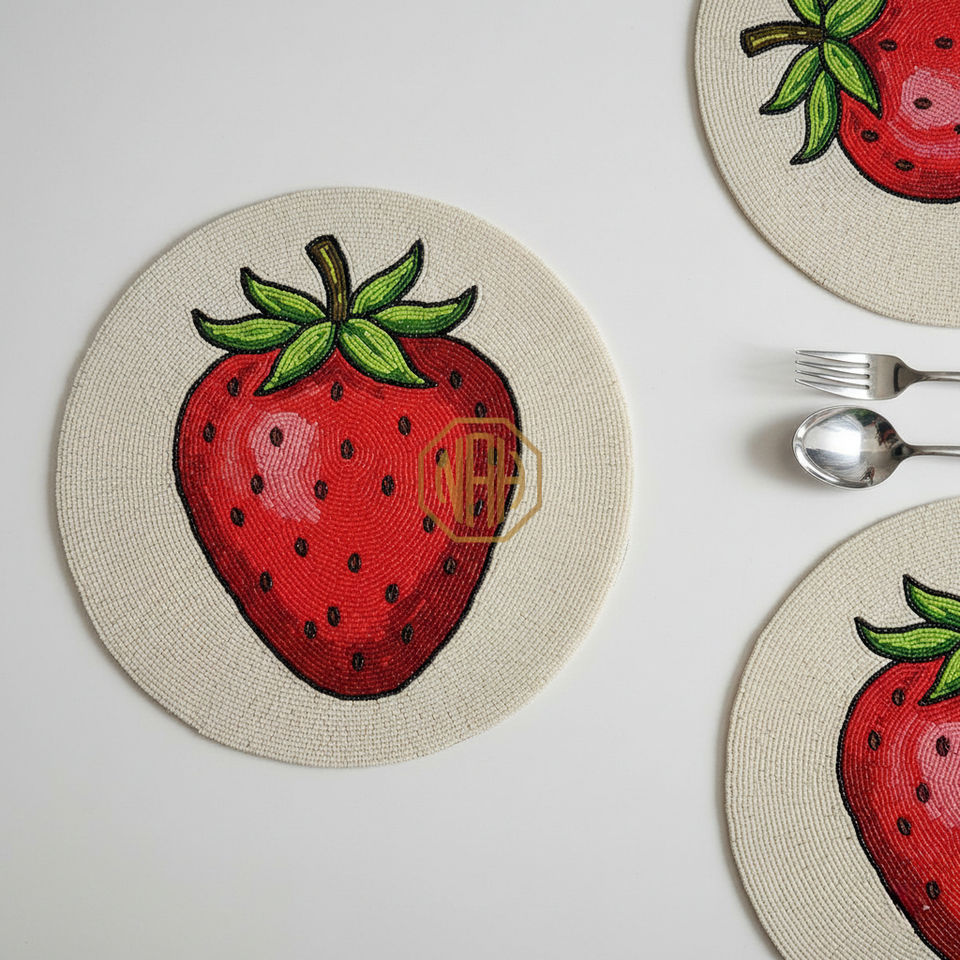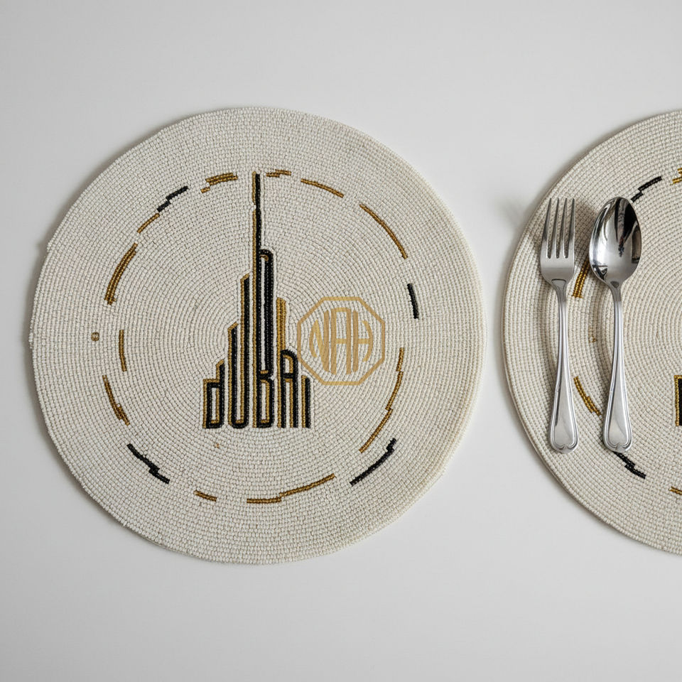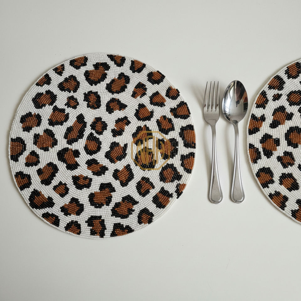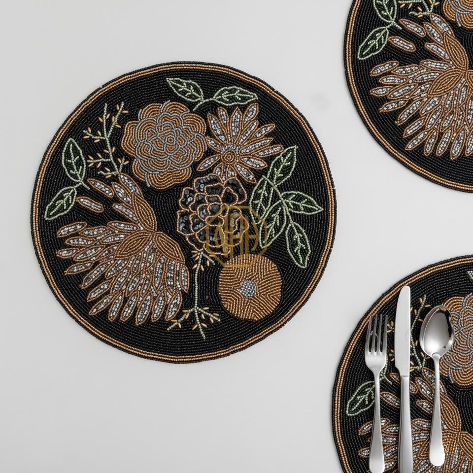 แผ่นรองจานลายต้นปาล์มประดับลูกปัดสุดหรู ทำมือ แบรนด์ NOORIMS AKBAR HANDICRAFTS ขายส่ง