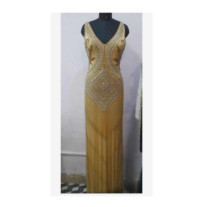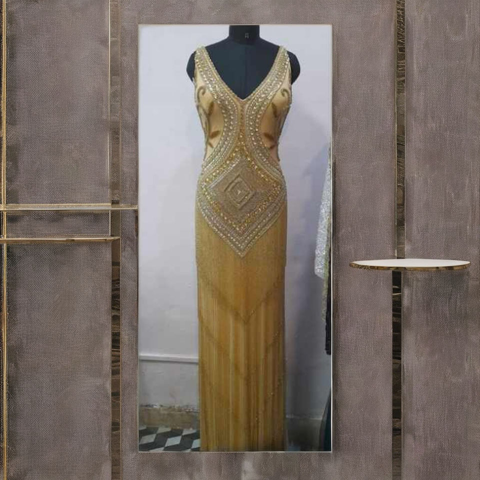 ชุดราตรีหรูหราประดับด้วยลูกปัดสีแดงเดรสยาวดีไซน์พรมแดงสวยงาม