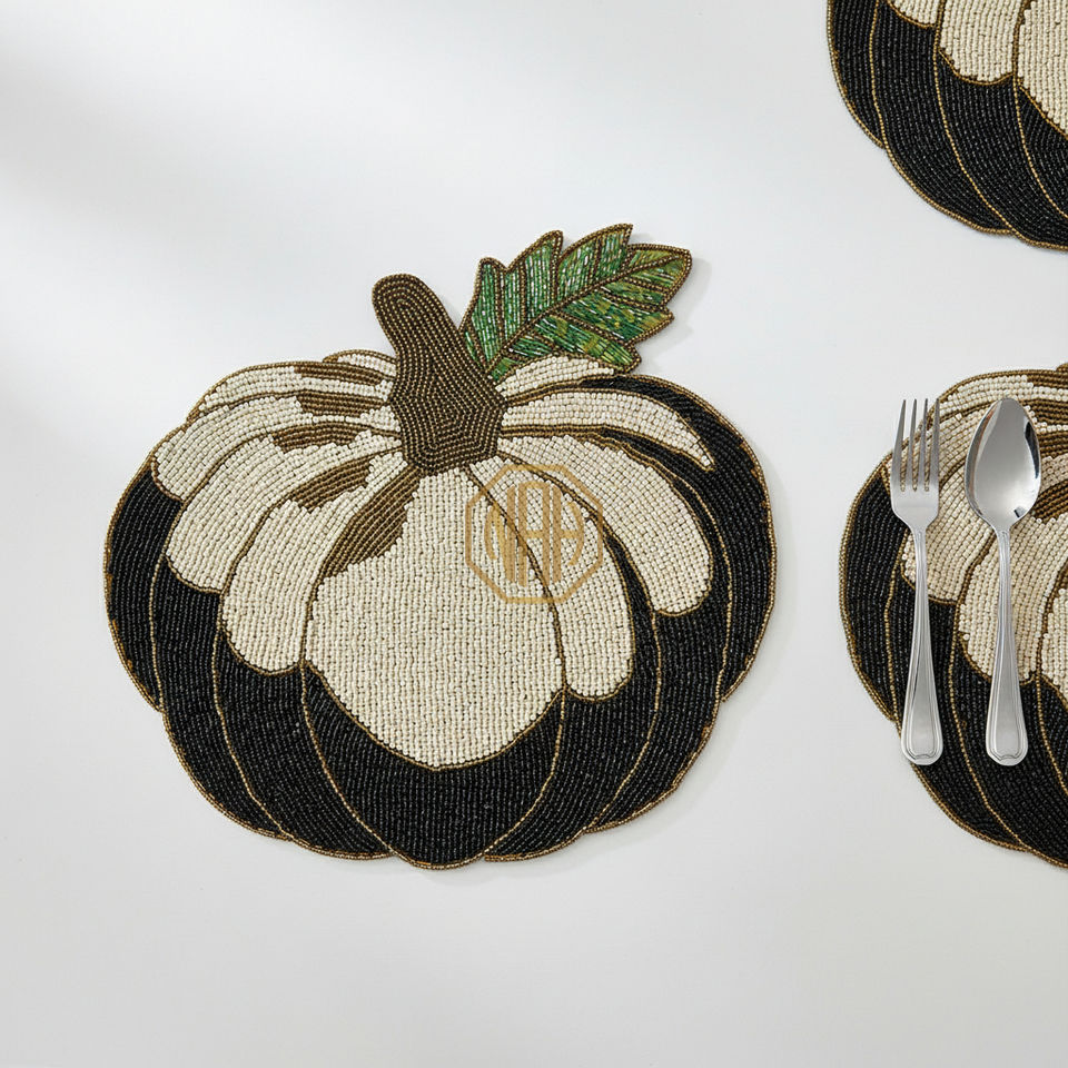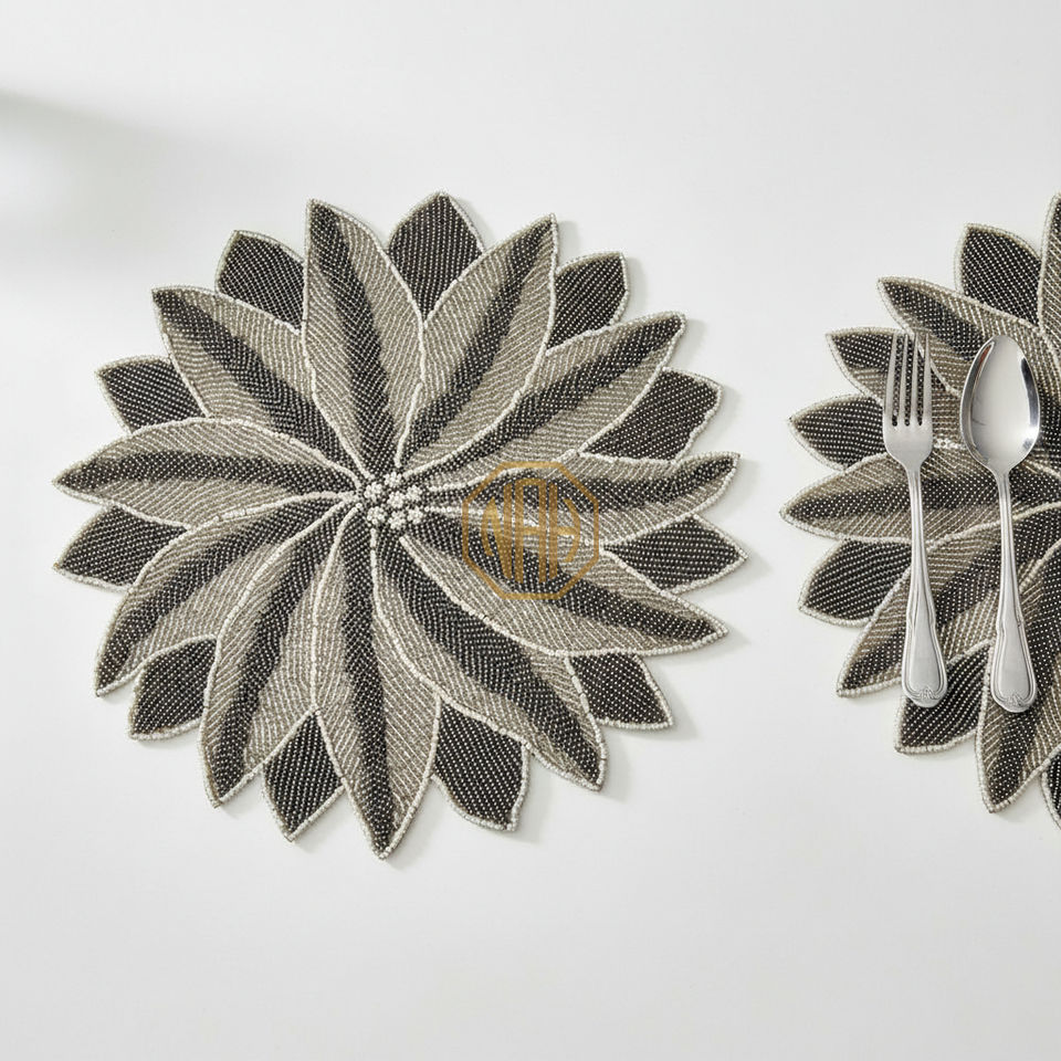 แผ่นรองจานประดับลูกปัดหรูหรา ทำด้วยมือ ผ้าซาตินสีสันสดใส แผ่นรองจานประดับลูกปัด จำหน่ายจำนวนมากสำหรับงานอีเว้นท์