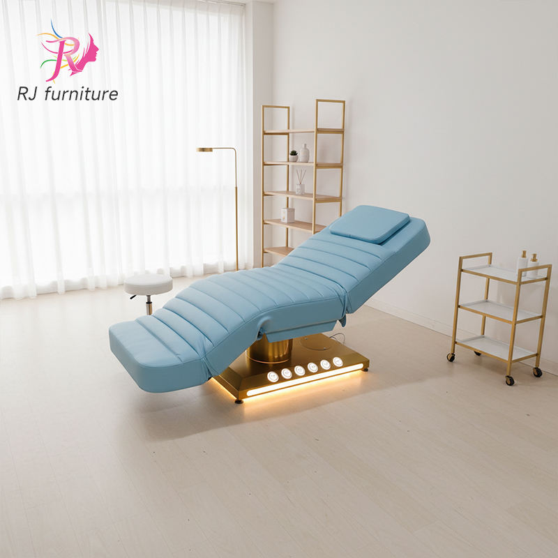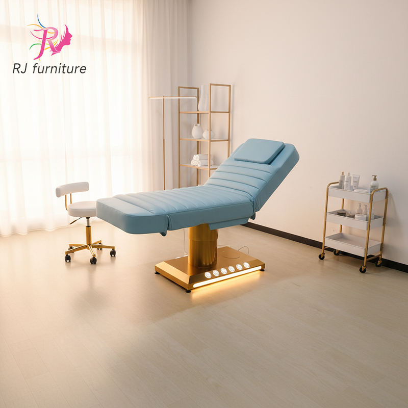 เฟอร์นิเจอร์ร้านเสริมสวยหรูหรา เตียงนวดต่อขนตาไฟฟ้า 3 มอเตอร์ พร้อมไฟ LED แบบโค้ง สำหรับสปาและทำทรีทเมนท์หน้า