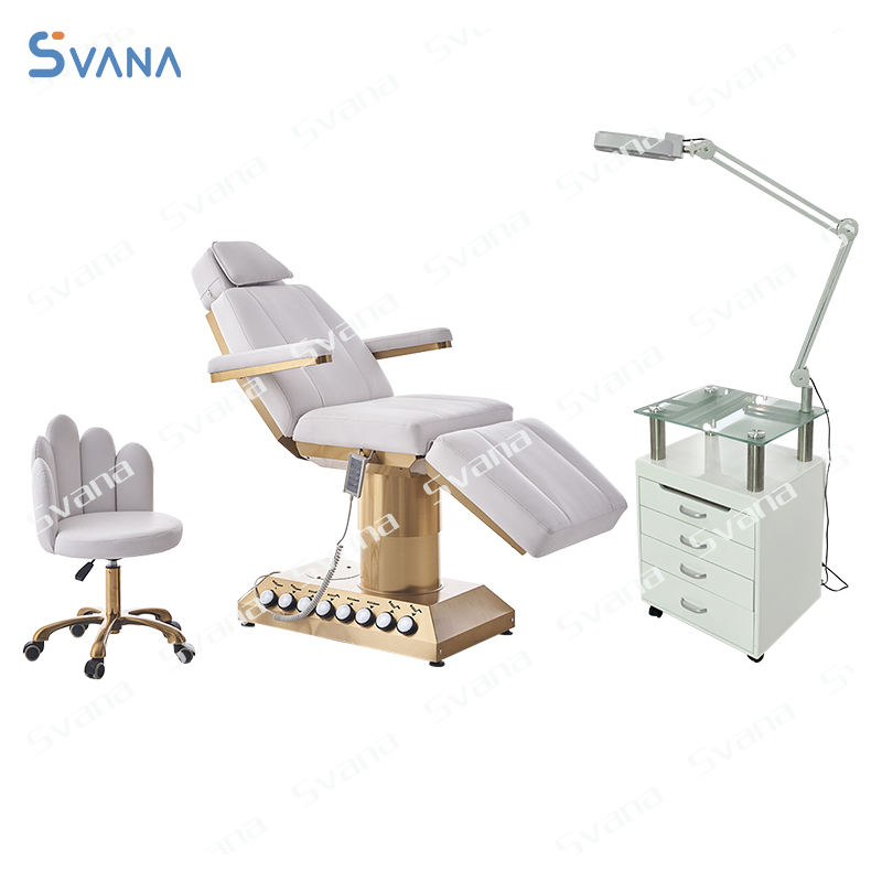 โต๊ะนวดสปาสุดหรูมีมอเตอร์ไฟฟ้า3ตัวเก้าอี้เสริมสวยเตียงสำหรับใบหน้า