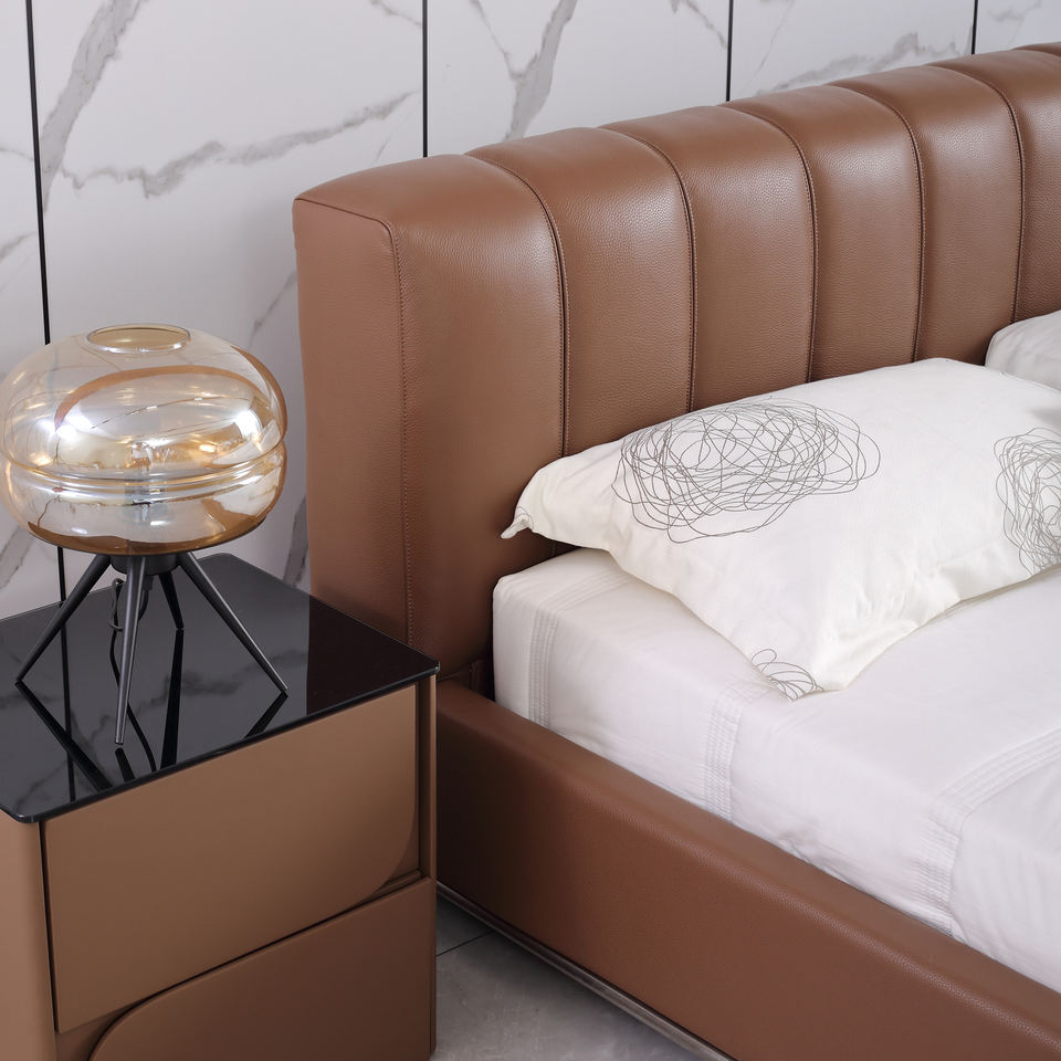 เตียงห้องนอนหรูหรา2025เตียงหนังที่ทันสมัยเฟอร์นิเจอร์ห้องนอนหอพักคู่
