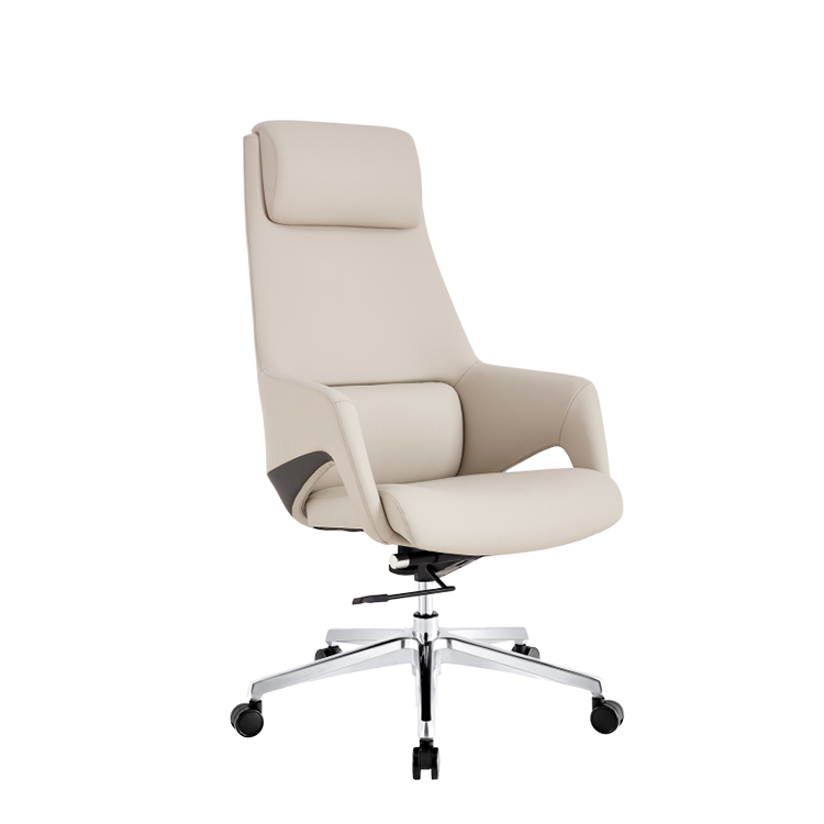 เก้าอี้สำนักงานหนังสีเบจหรูหราเก้าอี้ผู้บริหารที่มีพนักพิงสูงตามหลักสรีรศาสตร์สำหรับโฮมออฟฟิศ