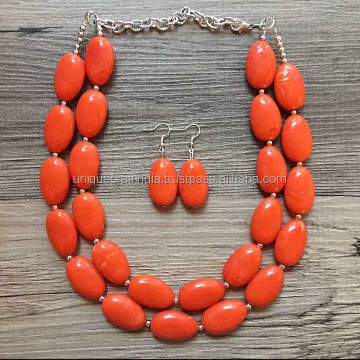 สร้อยคอจี้ลูกปัดเรซินสุดหรูสำหรับผู้หญิงชุดปาร์ตี้งานแต่งงานทันสมัย