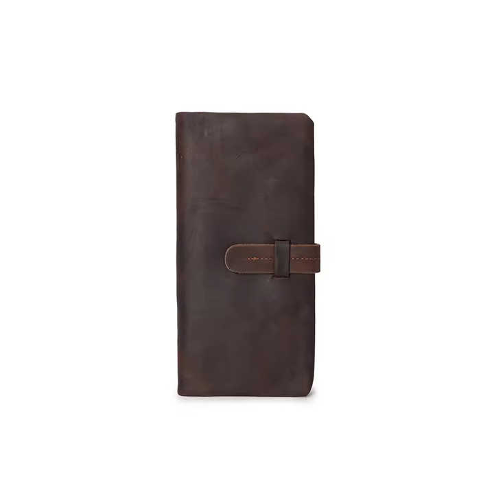 กระเป๋าสตางค์แบบพับได้สุดหรู หนังแท้ ทรงยาว ทนทาน ใส่บัตรเครดิต คลิปหนีบเงิน ช่องใส่เหรียญ ดีไซน์มินิมอล