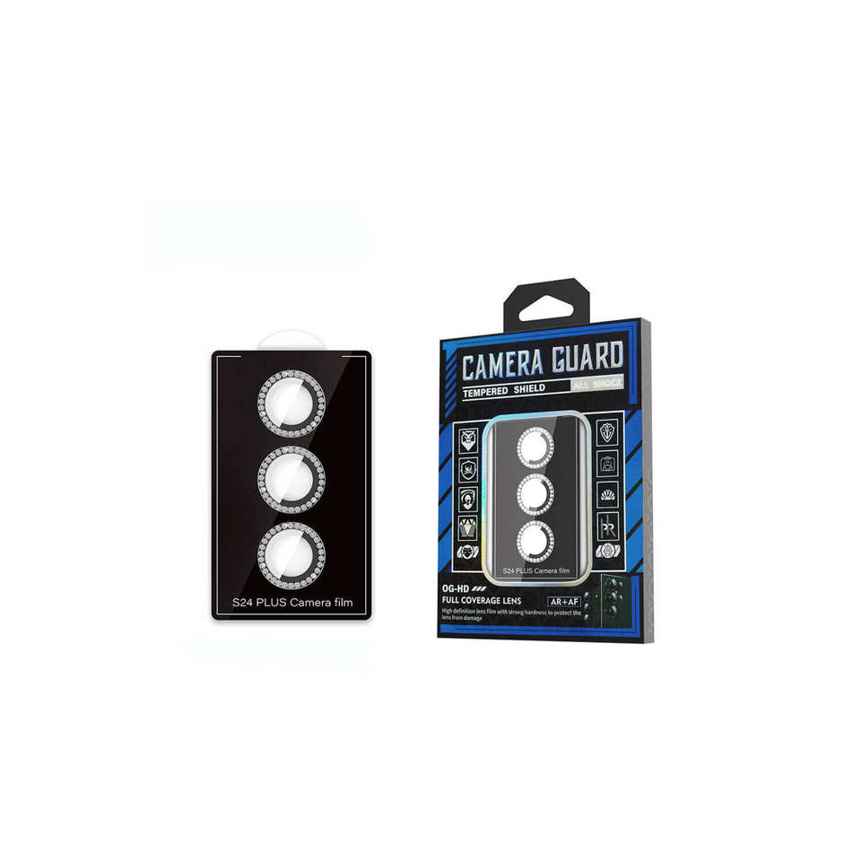 ฟิล์มกระจกนิรภัย9H สุดหรูสีดำ9H สำหรับปกป้องเลนส์กล้องเพชรสำหรับ Samsung และ Galaxy S24 Plus อุปกรณ์พกพา