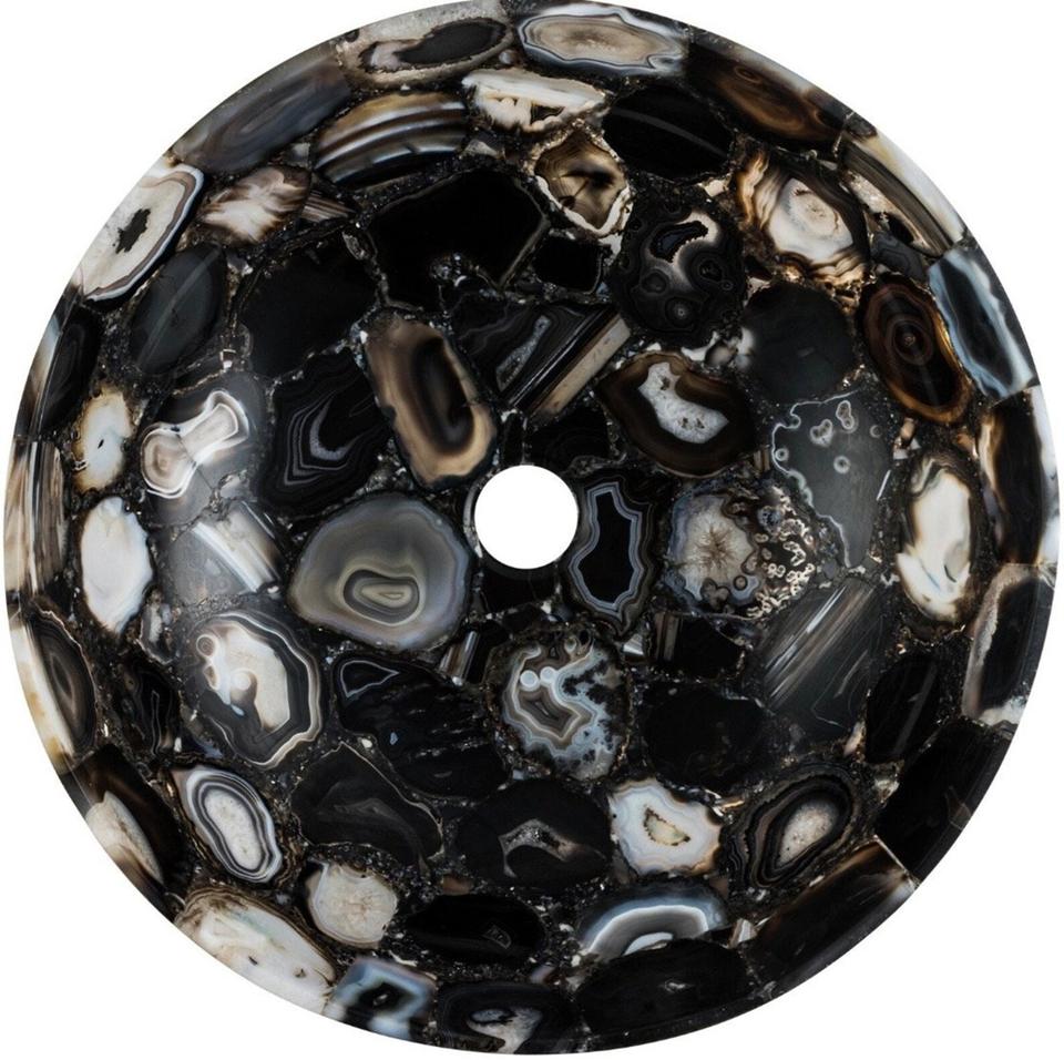 อ่างล้างหน้าทรงกลมหินอาเกตสีดำสุดหรู อ่างล้างมือหินธรรมชาติสำหรับห้องน้ำ งานแฮนด์เมด ดีไซน์เนอร์