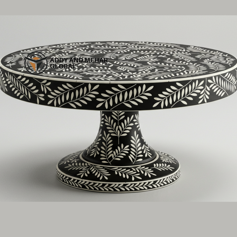 แท่นวางเค้กฝังกระดูกสีดำทำมือจานขนมหวานรูปใบไม้ทำมือดูหรูหรา