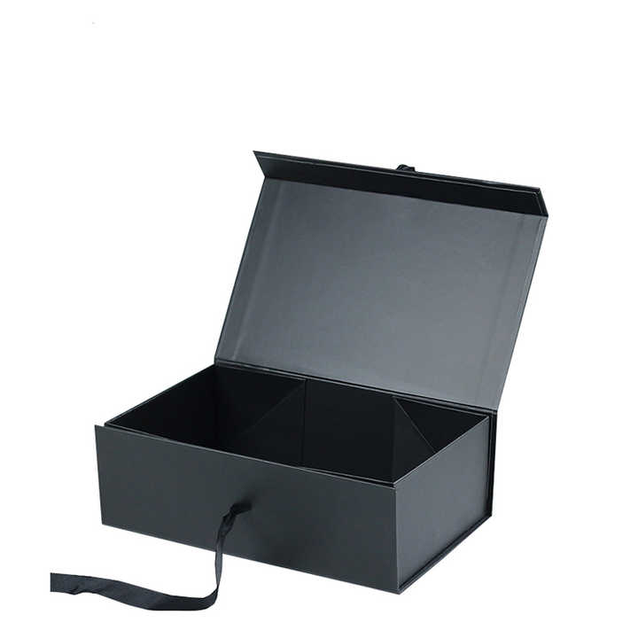 กล่องของขวัญกระดาษแข็งรูปทรงหนังสือสีดำแบบพับได้กล่องแม่เหล็กแบบฝาพับสำหรับวอดก้าฟองน้ำนูน