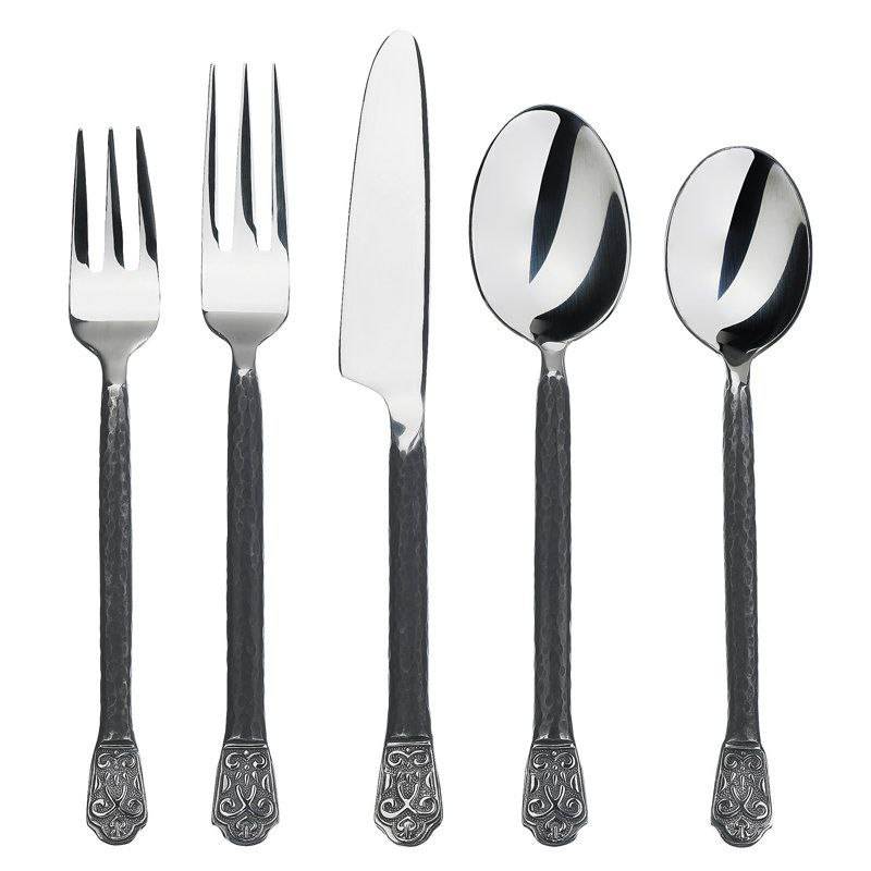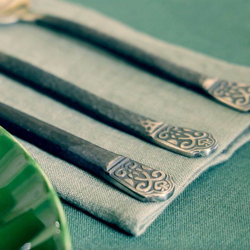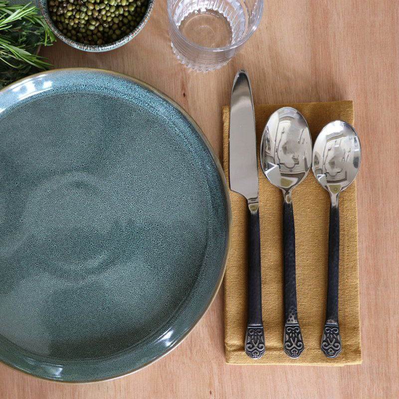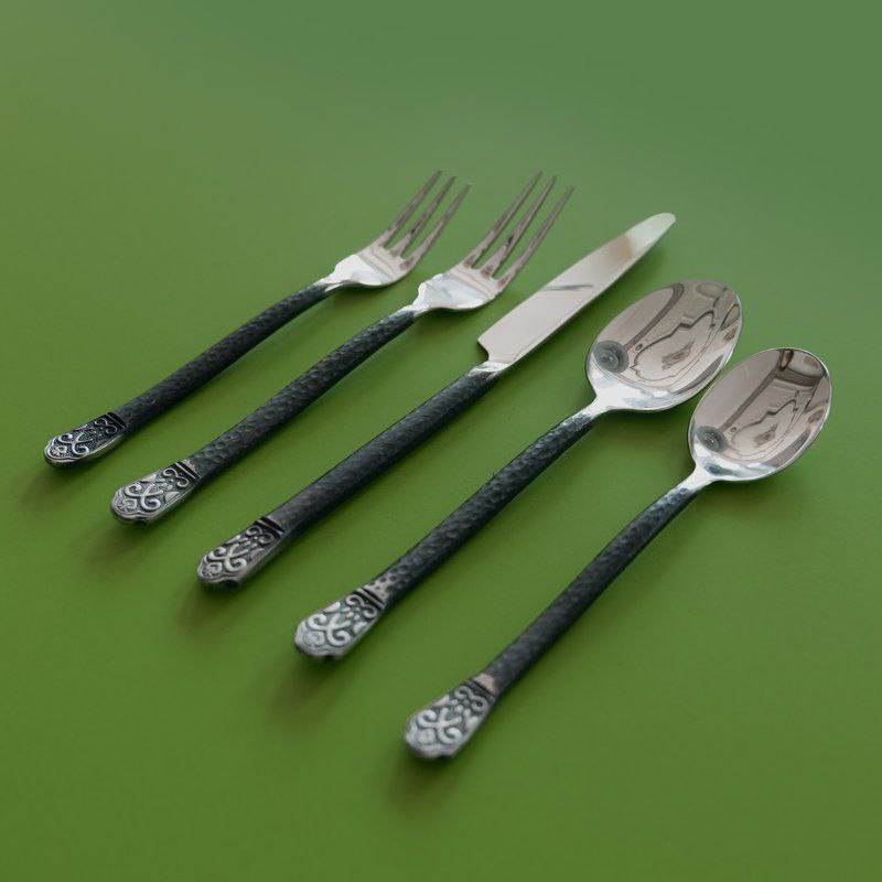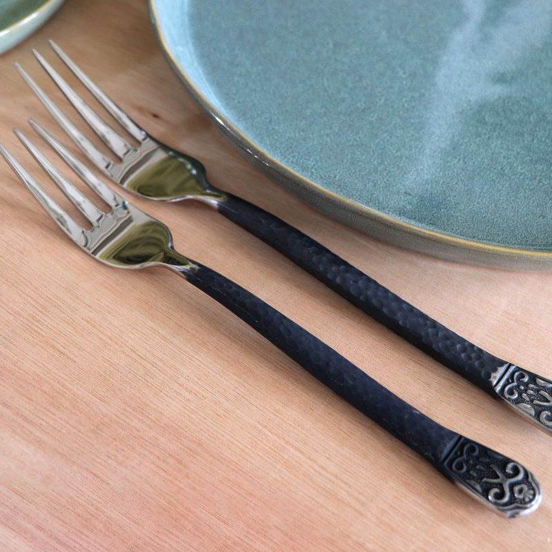 ชุดเครื่องใช้บนโต๊ะอาหารลายนูนสีดำสุดหรูพร้อมสแตนเลสกระจกสำหรับตกแต่งบนโต๊ะอาหารงานแต่งงาน