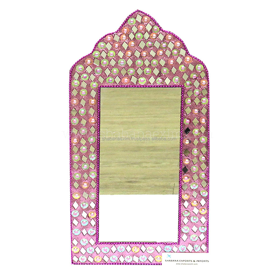 กระจกติดผนังตกแต่งขอบสีดำหรูหรา ประดับด้วยลูกปัดและกลิตเตอร์ เหมาะสำหรับแต่งหน้าในห้องนอนหรือห้องน้ำ