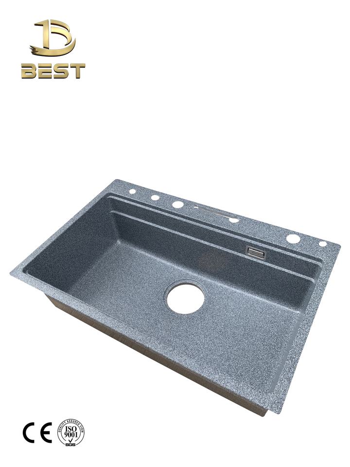 อ่างล้างจานสี่เหลี่ยมหินควอตซ์กันรอยขีดข่วนอ่างล้างจานคู่สไตล์ท็อปเมาท์