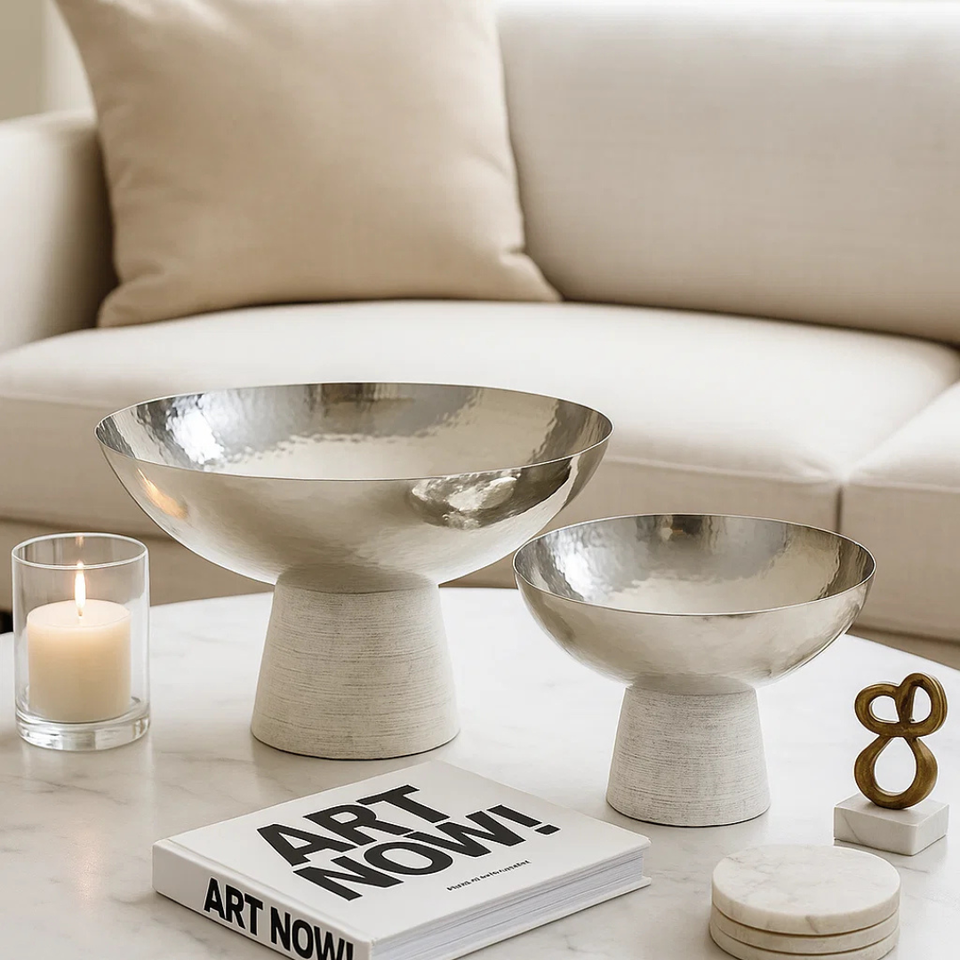 ชามตกแต่งโลหะสีขาวทำด้วยมือพร้อมฐานหินอ่อนสีขาวธรรมชาติที่ทันสมัยทำด้วยมือตรงกลางสำหรับโต๊ะกาแฟ