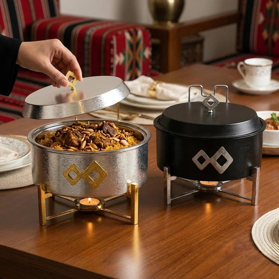 ถาดอุ่นอาหารสองชั้น สแตนเลสสีดำหรูหรา เคลือบผง ทนทาน ไม่ติดกระทะ เหมาะสำหรับบุฟเฟ่ต์ โรงแรม และงานจัดเลี้ยง