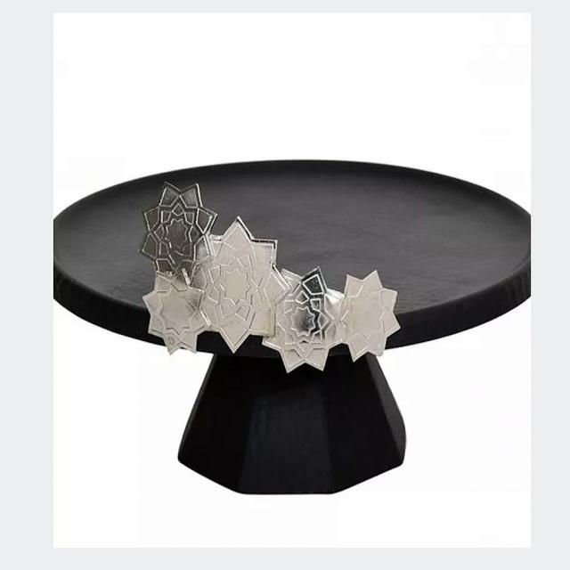 ฐานวางเค้กเหล็กสีดำสุดหรู พร้อมดีไซน์ดาวสีเงินสุดหรู เป็นมิตรกับสิ่งแวดล้อม และปลอดภัยสำหรับเครื่องล้างจาน เหมาะสำหรับใช้ในบ้านและงานปาร์ตี้