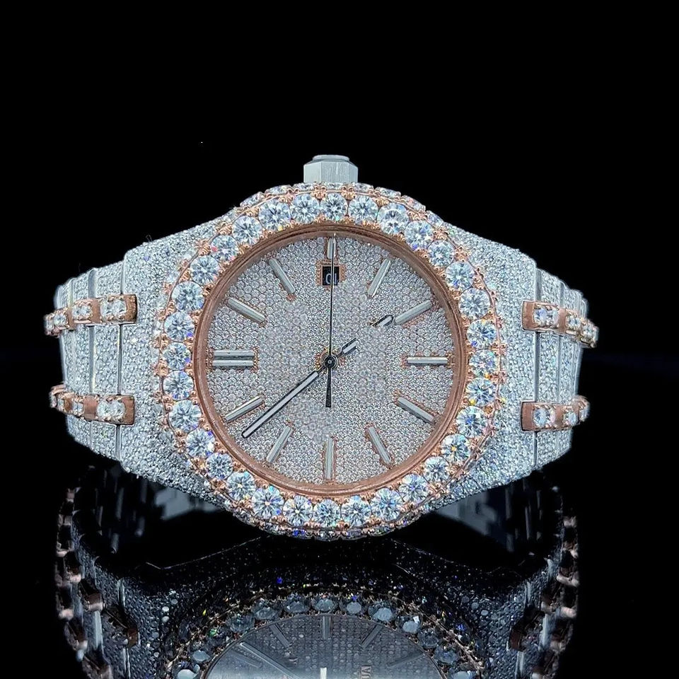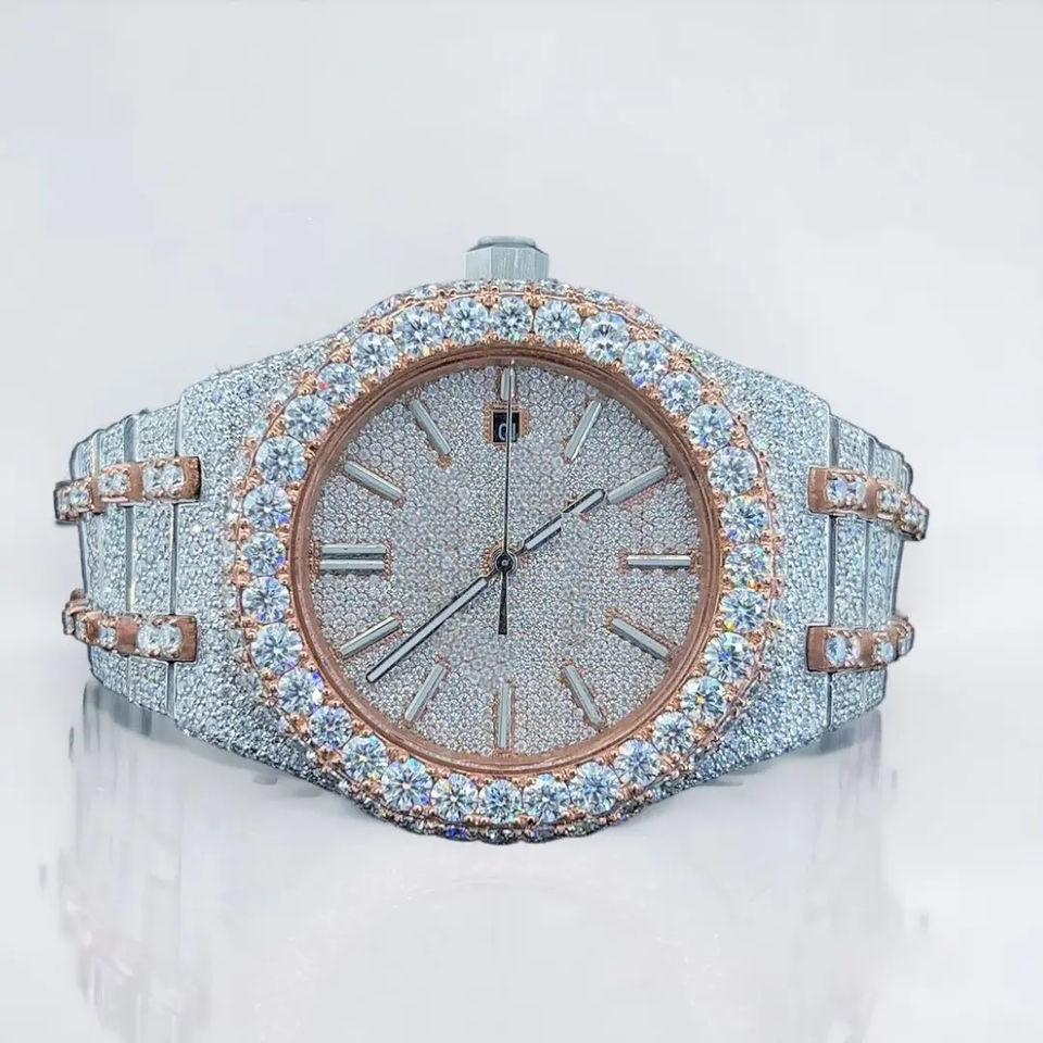 นาฬิกาเพชรหรูหราแวววาวสำหรับผู้ชายดีไซน์แบบกำหนดเองได้มีเพชรเต็มเรือนที่ออกแบบได้ในราคาจำนวนมากจากผู้ส่งออกอินเดีย