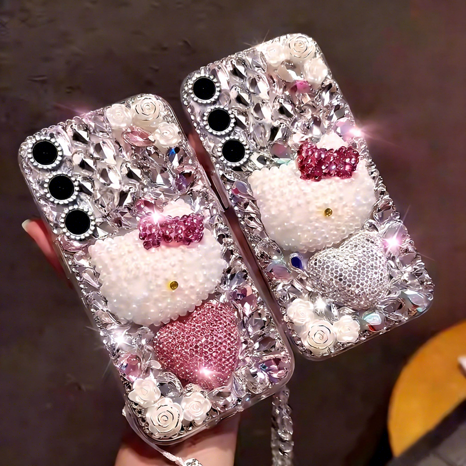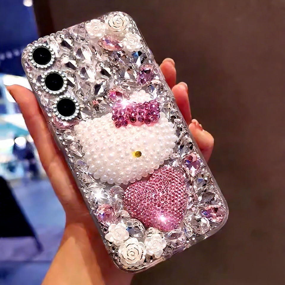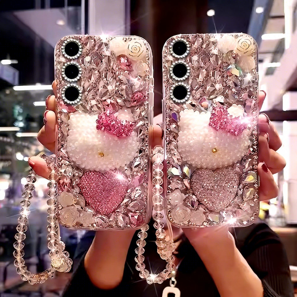 เคสโทรศัพท์ลายแมวประดับเพชรหรูหรา สำหรับ Samsung S26 Ultra S25 FE A56 A36 A16 5G, ฝาหลังลายการ์ตูนน่ารัก ประดับคริสตัลวิบวับ