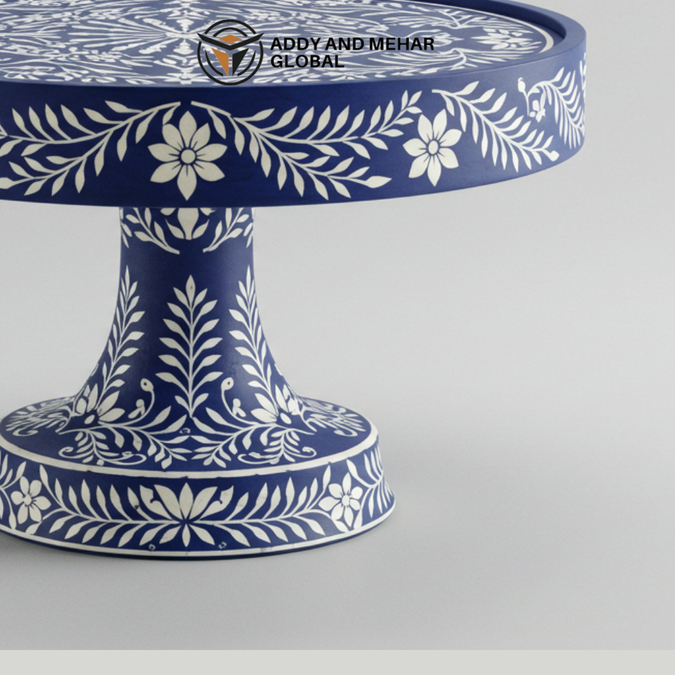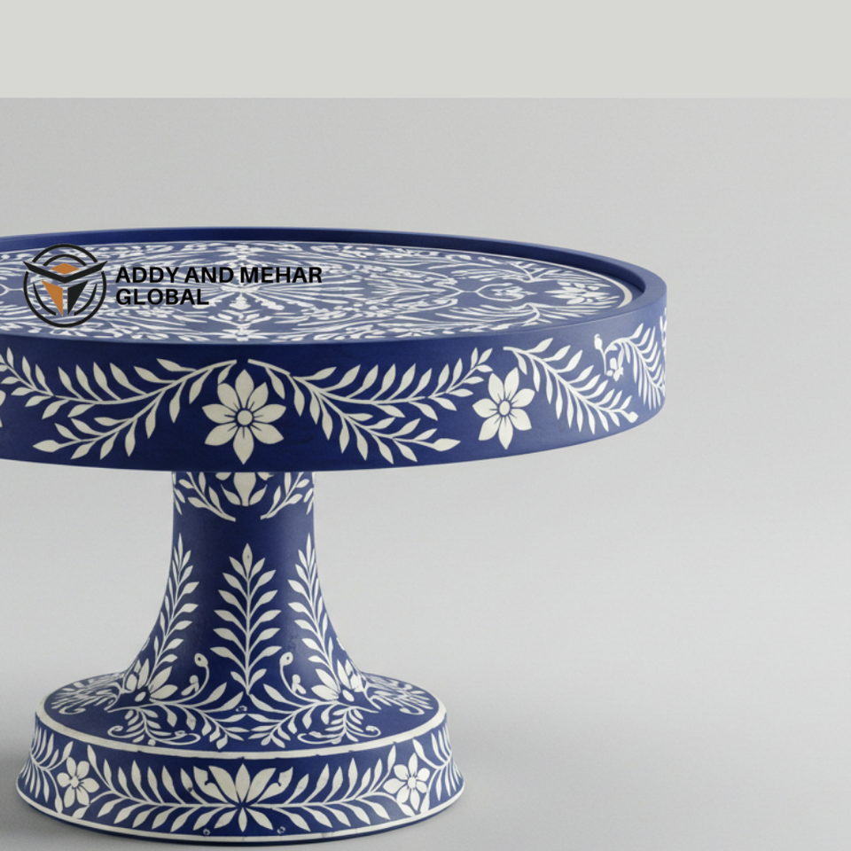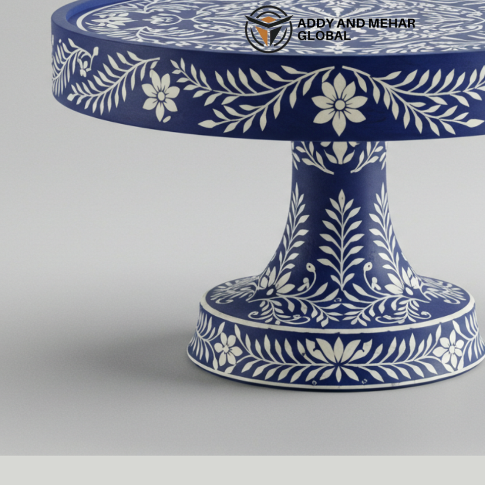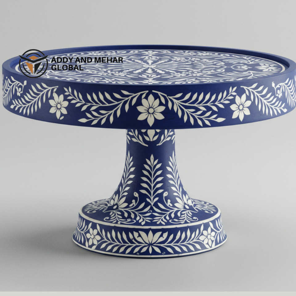แท่นวางเค้กฝังกระดูกสีฟ้าทำมือแท่นวางลายดอกไม้สุดหรูสำหรับขนมหวาน