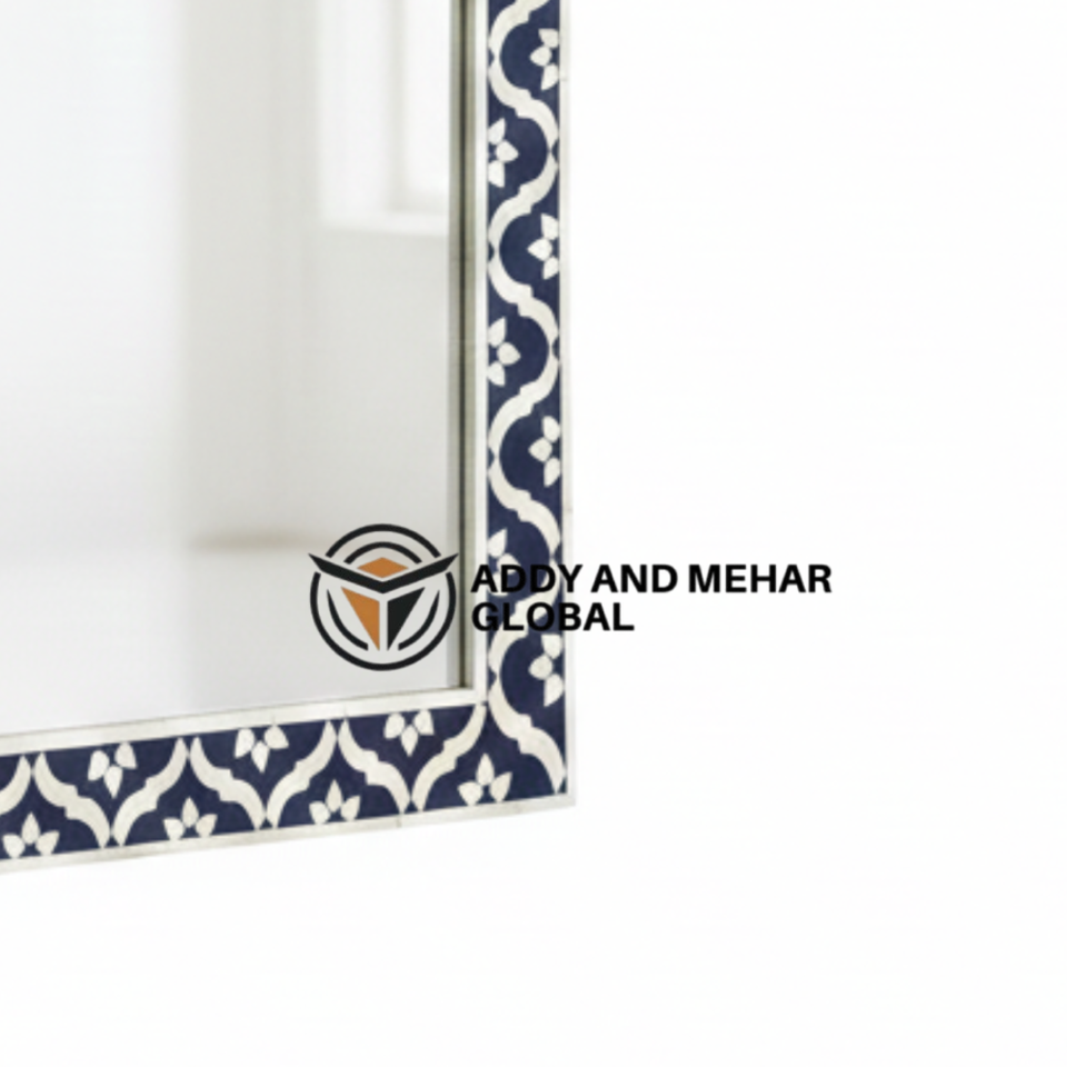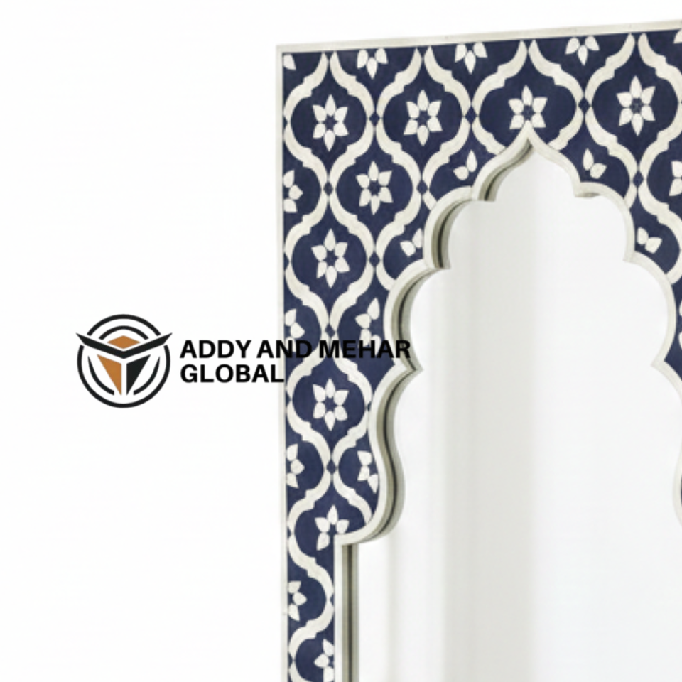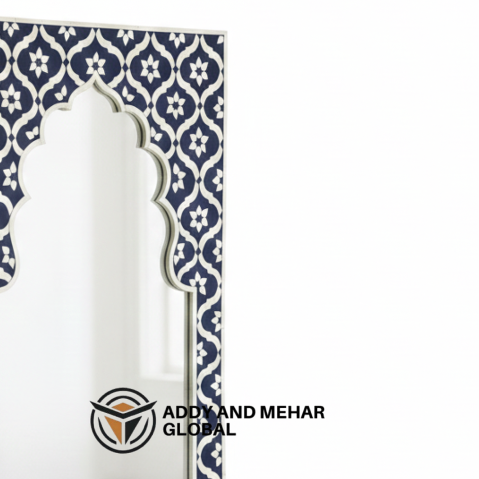 กระจกติดผนังลายอาร์ตเดโคสีน้ำเงินหรูหรา ตกแต่งด้วยไม้เอ็มดีเอฟ ดีไซน์โค้งมน งานแฮนด์เมดสำหรับตกแต่งงานแต่งงาน