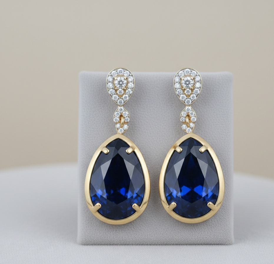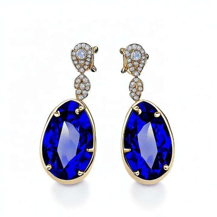 ต่างหูห้อยทรงหยดน้ำประดับเพชร CZ สีน้ำเงินหรูหรา ทำจากเงินแท้ 925 ชุบทอง 18K เหมาะสำหรับงานปาร์ตี้ ของขวัญสำหรับเธอ