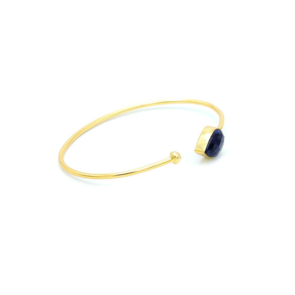 กำไลข้อมือแบบปรับได้ ชุบทอง 18K ประดับหยกสีน้ำเงินสุดหรูทันสมัย | เครื่องประดับทองเหลืองทำมือคุณภาพสูงสำหรับงานแต่งงานของผู้หญิง