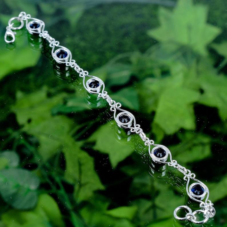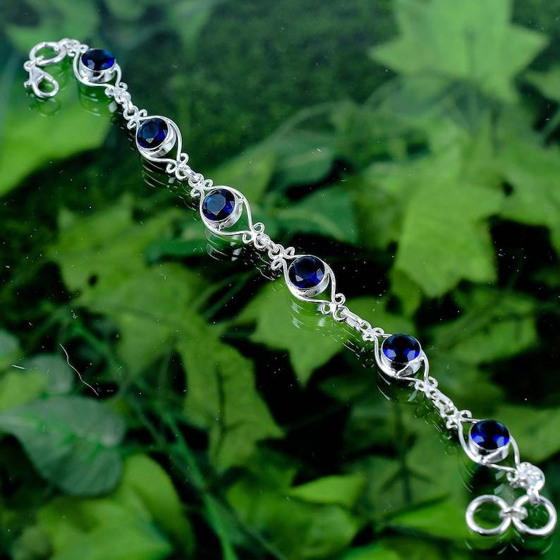 สร้อยข้อมือหินไพลินสีน้ำเงินสุดหรู เงินแท้ 925 ทำมือ ประดับอัญมณี ของขวัญสำหรับผู้หญิง ดีไซน์หรูหรา ปรับขนาดได้