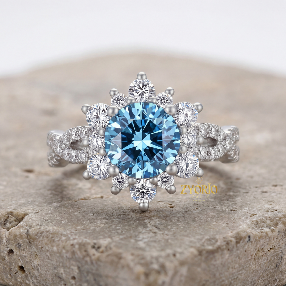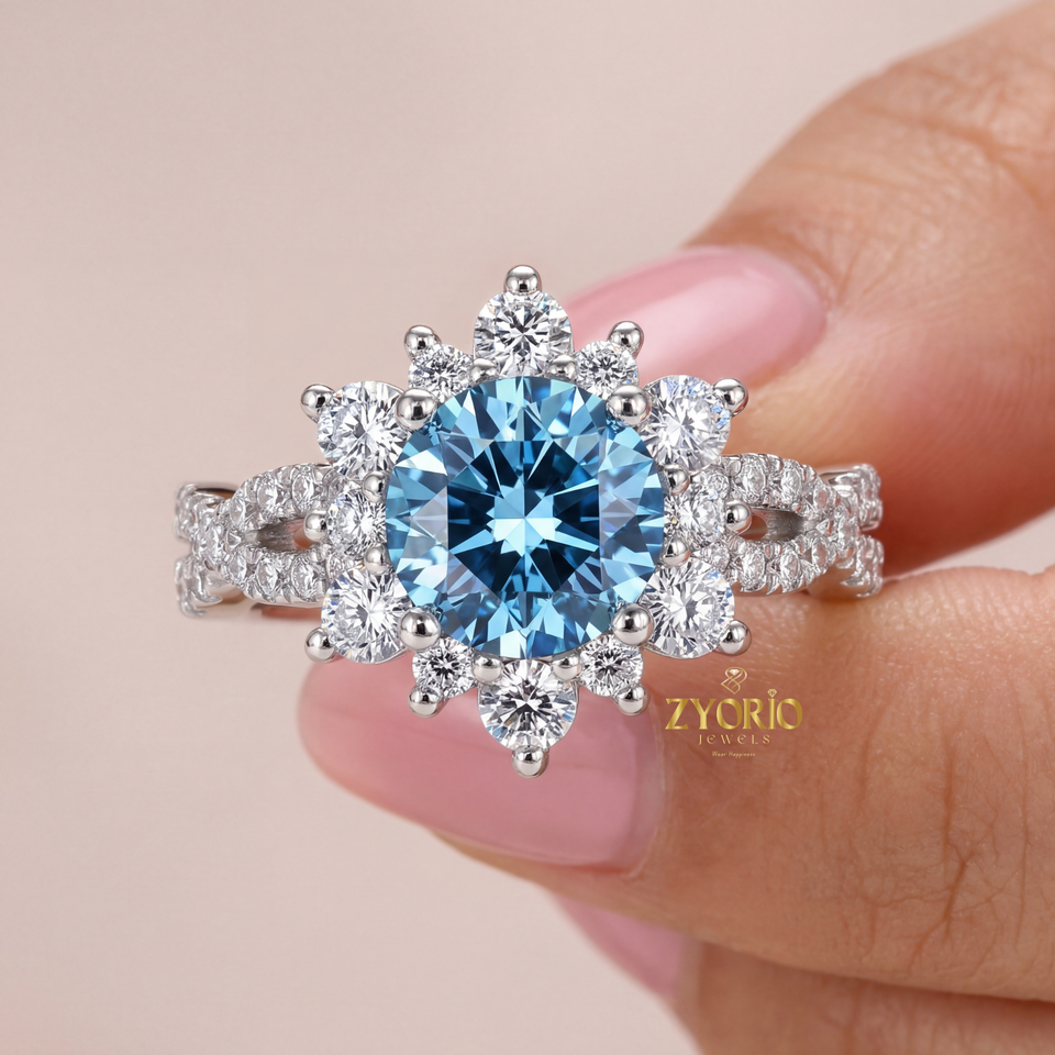 แหวนหมั้นเพชรแซฟไฟร์สีน้ำเงินสุดหรู ผลิตในห้องปฏิบัติการ เงินแท้ 925 ทอง 14K 18K รับรองโดย IGI เครื่องประดับสั่งทำสำหรับผู้หญิง