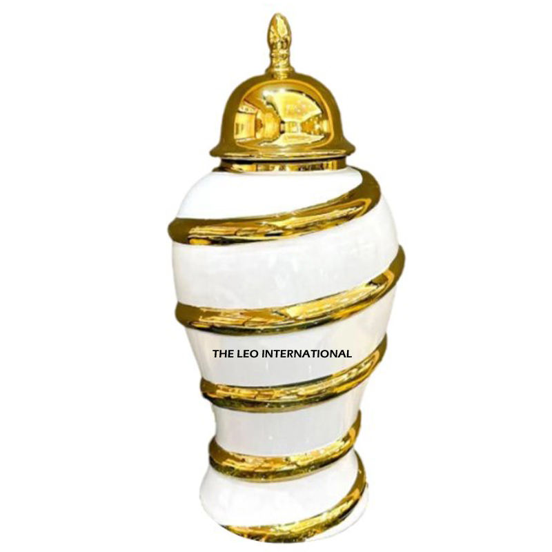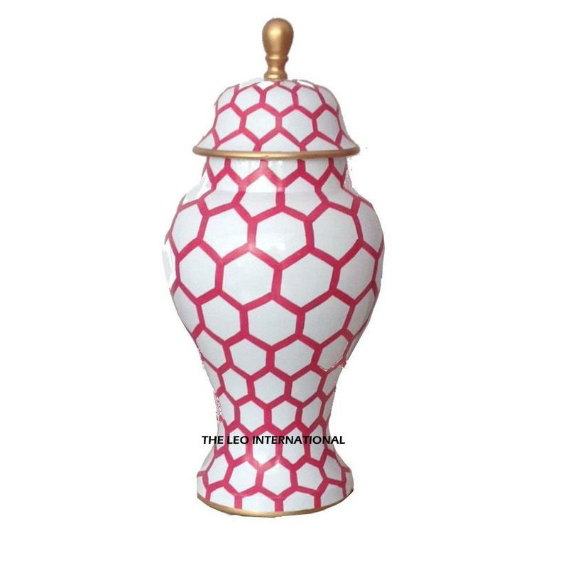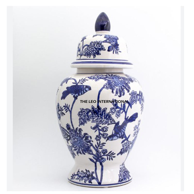 แจกันขิงโลหะคลาสสิกสีฟ้าและสีขาวสุดหรูของตกแต่งในร่มสำหรับบ้านและโรงแรม