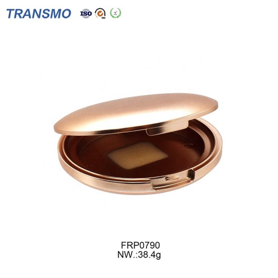 บรรจุภัณฑ์บลัชออนสุดหรู สีโรสโกลด์ โฮโลแกรม ตลับแป้งอัดแข็งทรงกลม พร้อมกระจก