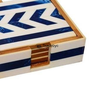 ชุดจานรองแก้วทำมือฝังลายกระดูกสุดหรู ขนาด 4x4 นิ้ว รูปทรงสี่เหลี่ยม มีหลายสีให้เลือก-Tradebyd