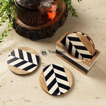 ชุดจานรองแก้วสี่เหลี่ยมฝังกระดูกสัตว์ทำมือสุดหรู พรีเมียม หลายสี จาก Tradebyd